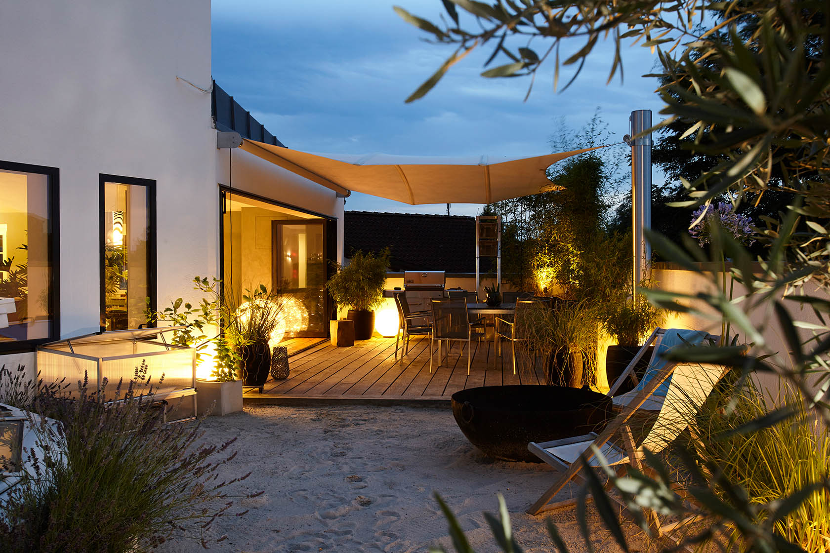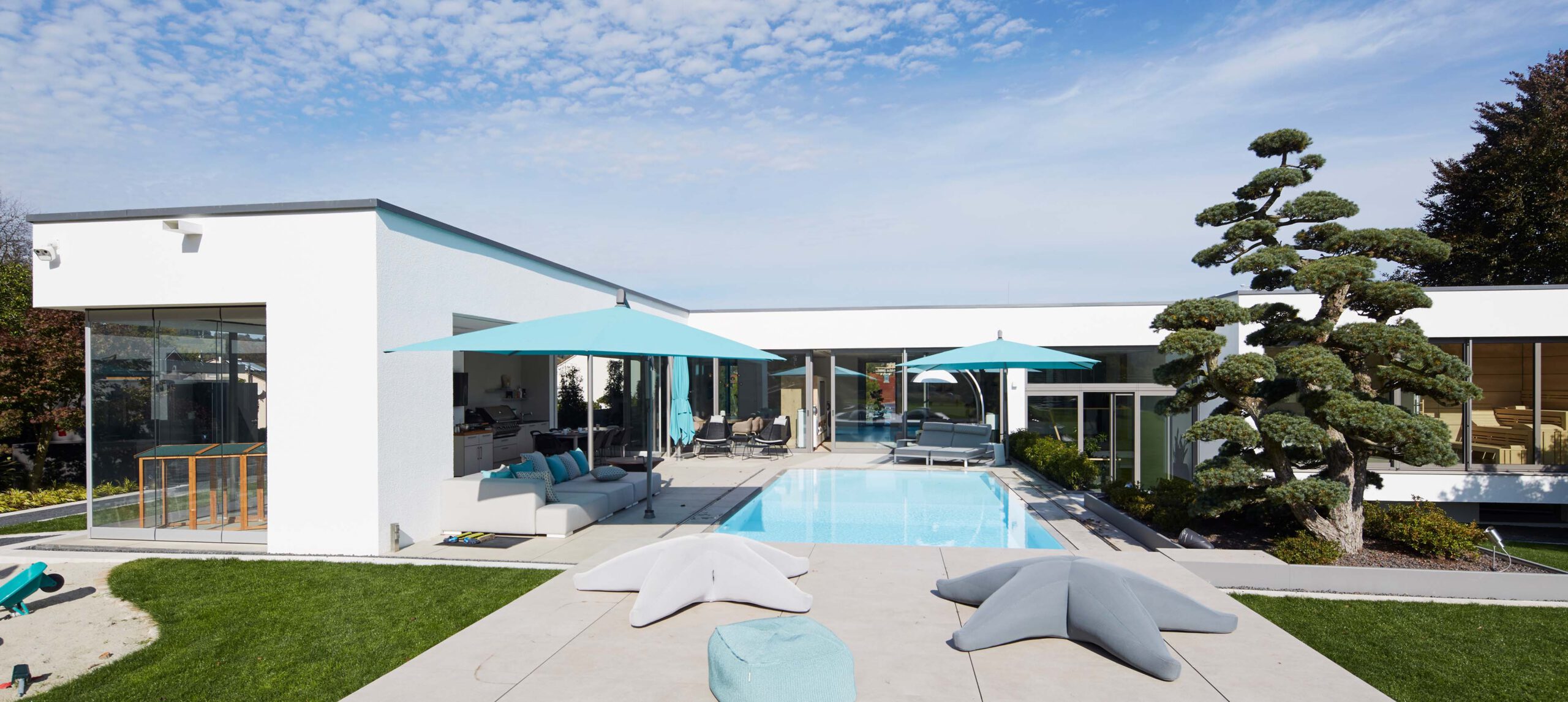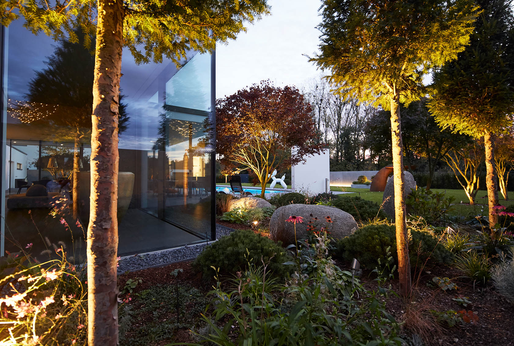 Im Jahr 1999 haben wir unser Haus gebaut, das wir sehr lieben und das 14 Jahre lang auf dem großen Grundstück stand, nicht mehr und nicht weniger. Vor 8 Jahren hat Axel Fautz und seine Firma „Fautz die Gärten“ dieses Grundstück „in die Hand genommen“ und es in eine Gartenlandschaft verwandelt, die nicht nur das Haus aufwertet, sondern uns einen neuen, wunderschönen Lebensraum gegeben hat. Verschiedene einzigartige Räume in diesem „Raum“: z.B. unsere nun zentral integrierte alte Eiche, umgeben von einer halbrunden Bank, auf der wir an heißen Tagen den kühlen Schatten genießen. Oder die große Terrasse aus mediterran anmutendem Kalkstein neben dem großzügigen Pool, die nicht nur an lauen Sommerabenden zur Happy Hour einlädt mit Blick über Freiburg, sondern auch zu sportlichem Schwimm- und Badevergnügen. Und derjenige, der nach einem langen Arbeitstag Entspannung und Ruhe sucht, findet sein Plätzchen auf der kleinen Terrasse vor einem alpinen Blockhaus mit Blick auf das Freiburger Münster, den Schauinsland, den Schönberg bis hin zum Blauen. Wir wissen nun (leider) nicht mehr, wohin wir reisen sollten, weil es nirgends so schön ist wie zuhause.